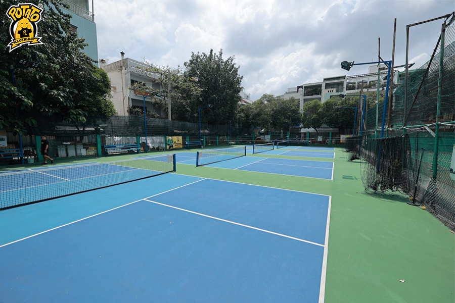 Sân thi đấu Pickleball có kích thước nhỏ hơn sân tennis, nhằm giúp người chơi di chuyển ít hơn và tập trung hơn vào kỹ thuật. Lưới trong Pickleball cũng thấp hơn so với lưới tennis, tạo điều kiện cho những cú đánh sát mặt đất.